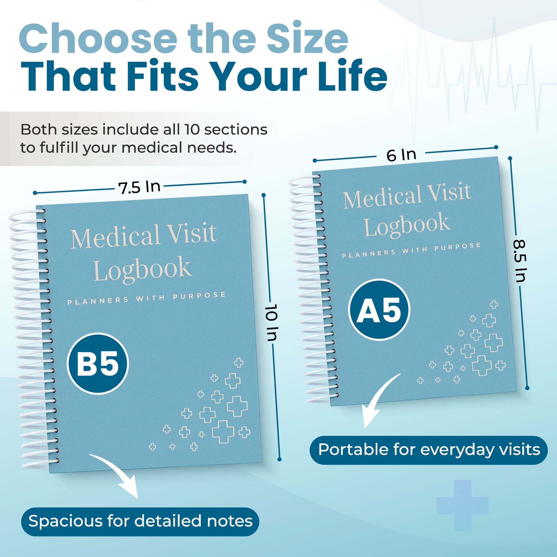 Medical Visit Logbook (A5 or B5) Spiral Bound Medical Planner & Medical History Organizer